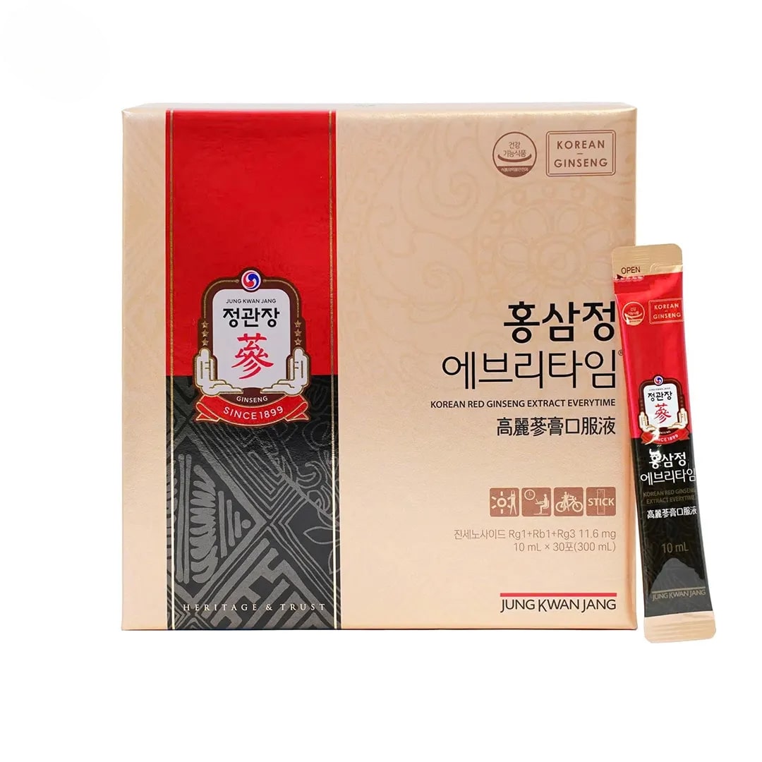 Nước hồng sâm KGC Korean Red Ginseng Extract Everytime là dòng tinh chất hồng sâm dạng gói tiện lợi, giúp nạp năng lượng nhanh chóng cho những ngày bận rộn. Sản phẩm được chế biến từ hồng sâm 6 năm tuổi cô đặc, mang lại hương vị đậm đà, dễ uống và hấp thu tốt. Nhờ quy trình chiết tách chuẩn Hàn Quốc, mỗi gói chứa hàm lượng saponin ổn định, hỗ trợ tăng cường thể lực, cải thiện sự tập trung và giảm mệt mỏi hiệu quả. Thiết kế gói nhỏ gọn giúp bạn mang theo mọi lúc, phù hợp cho người làm việc cường độ cao hoặc cần bồi bổ sức khỏe mỗi ngày. Đây là lựa chọn lý tưởng để duy trì sức bền, tăng đề kháng và chăm sóc sức khỏe toàn diện một cách hiện đại và tiện lợi.