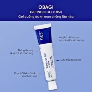 Obagi Tretinoin Gel 0.05% là dạng gel trị mụn chuyên sâu giúp làn da bứt phá trạng thái bí tắc và xỉn màu nhờ khả năng thúc đẩy thay mới tế bào vượt trội. Công thức tretinoin nồng độ 0.05% được bào chế trong nền gel mỏng nhẹ, thấm nhanh và hạn chế bết dính, phù hợp cho làn da dầu hoặc dễ nổi mụn. Sản phẩm hỗ trợ làm thông thoáng lỗ chân lông, giảm nhân mụn cứng đầu, đồng thời cải thiện dần độ mịn và sự sáng khỏe của bề mặt da. Khi sử dụng đều đặn, gel giúp da trở nên căng mượt, đều màu hơn và giảm rõ rệt tình trạng sần sùi. Đây là lựa chọn lý tưởng cho những ai đang tìm giải pháp retinoid hiệu lực cao nhưng vẫn êm nhẹ khi thoa.