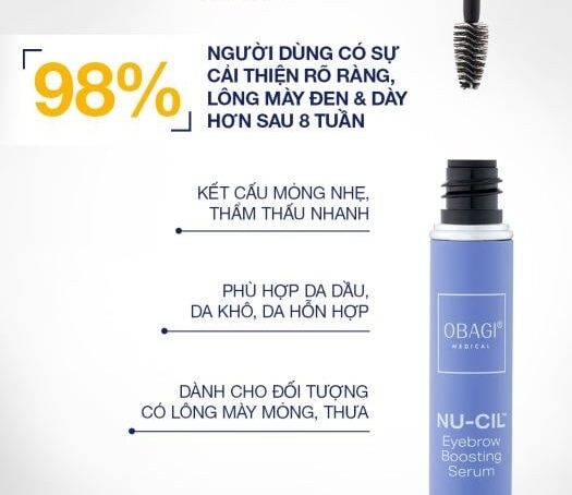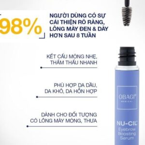 Đối với những lông mày từng bị nhổ quá nhiều hoặc chịu tổn thương do tạo hình sai cách, serum Obagi Nu-Cil Eyebrow Boosting là giải pháp phục hồi hiệu quả. Các thành phần tái tạo nang lông giúp cải thiện sức sống từ gốc, giảm rụng và tăng mật độ sợi lông. Serum không chỉ giúp phục hồi lông mày mà còn duy trì sức khỏe lâu dài, hạn chế yếu và mỏng trở lại. Sử dụng đều đặn, bạn sẽ thấy lông mày dày hơn, khỏe hơn và tự nhiên hơn chỉ sau vài tuần.