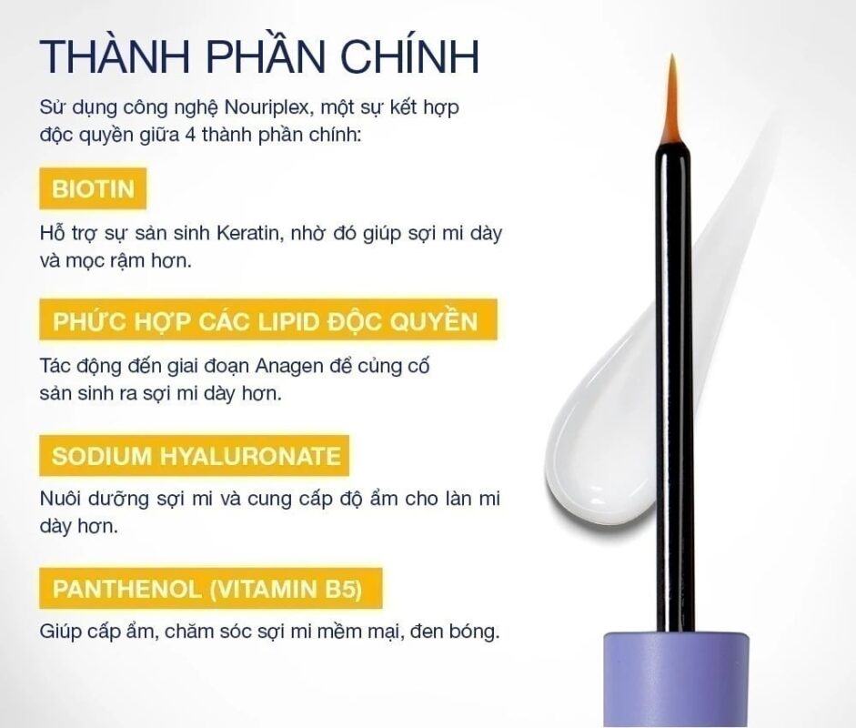 Kết quả là mi không chỉ dài mà còn chắc khỏe, bóng đẹp tự nhiên. Hoạt chất này phù hợp với cả mi nhạy cảm, không gây kích ứng. Đây là yếu tố quan trọng giúp serum đạt hiệu quả toàn diện và lâu dài cho hàng mi mềm mượt.