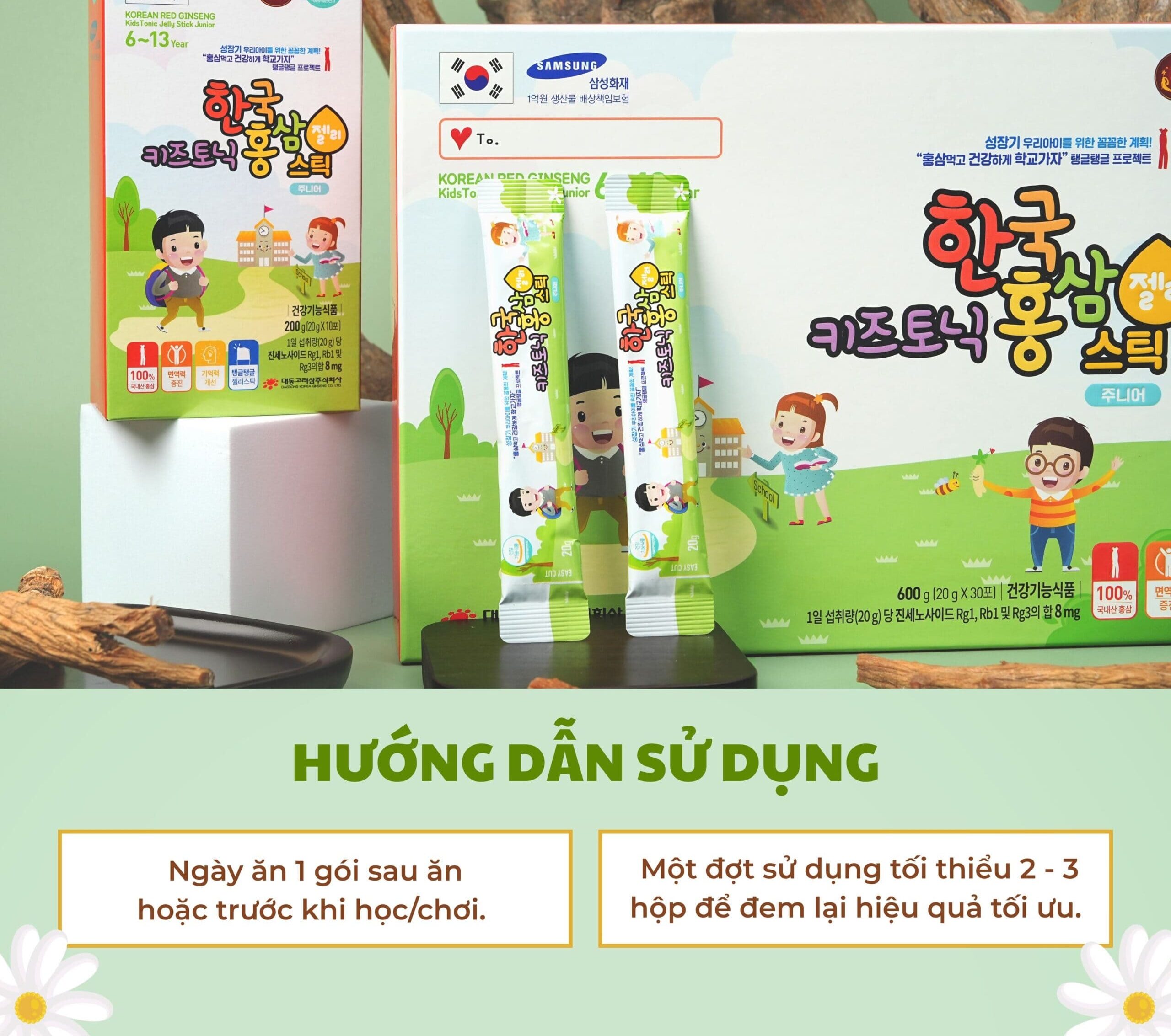 Cách dùng thạch hồng sâm trẻ em Daedong Junior Korean Red Ginseng đúng cho từng độ tuổi