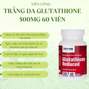 Viên uống Glutathione Reduced Jarrow 1000mg – Giúp da sáng khỏe, tăng khả năng chống oxy hóa