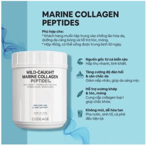 Nhờ công nghệ thủy phân hiện đại, từng phân tử collagen được chia nhỏ để cơ thể hấp thu hiệu quả hơn. Ngoài việc chăm sóc da, sản phẩm còn góp phần hỗ trợ tóc – móng khỏe hơn và cải thiện sự linh hoạt của khớp. Lựa chọn Codeage Marine Collagen Peptides chính là bước nâng cấp đơn giản nhưng mạnh mẽ cho vẻ đẹp và sức khỏe hàng ngày của bạn.