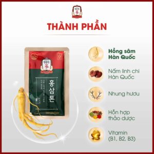 Hồng sâm 6 năm tuổi được chọn lọc kỹ lưỡng, chứa hàm lượng ginsenoside cao và nhiều vitamin, khoáng chất thiết yếu. Đây là thành phần chính mang lại hiệu quả tăng sức đề kháng, cải thiện tim mạch, trí não và năng lượng. Quá trình lên men làm tăng hoạt tính sinh học, giúp cơ thể hấp thu dưỡng chất tối đa.