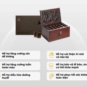 Hồng Sâm Linh Đan Hwang Jin Dan KGC Jung Kwan Jang là dòng linh đan cao cấp kết hợp tinh hoa hồng sâm 6 năm tuổi cùng quy trình bào chế chuẩn hoàng cung, mang đến nguồn năng lượng bền bỉ cho người sử dụng. Sản phẩm tạo dấu ấn với dạng viên hoàn tròn, đậm đặc tinh chất sâm, giúp nuôi dưỡng cơ thể từ bên trong và hỗ trợ tăng cường sinh lực mỗi ngày. Nhờ công nghệ cô đặc độc quyền của KGC, mỗi viên mang lại hương vị sâm trọn vẹn, dễ hấp thu và phù hợp với người cần bồi bổ thể trạng. Thiết kế hộp sang trọng, chuẩn quà biếu sức khỏe đẳng cấp, khiến Hwang Jin Dan trở thành lựa chọn tin cậy cho những ai muốn chăm sóc sức khỏe theo cách tinh gọn nhưng hiệu quả.