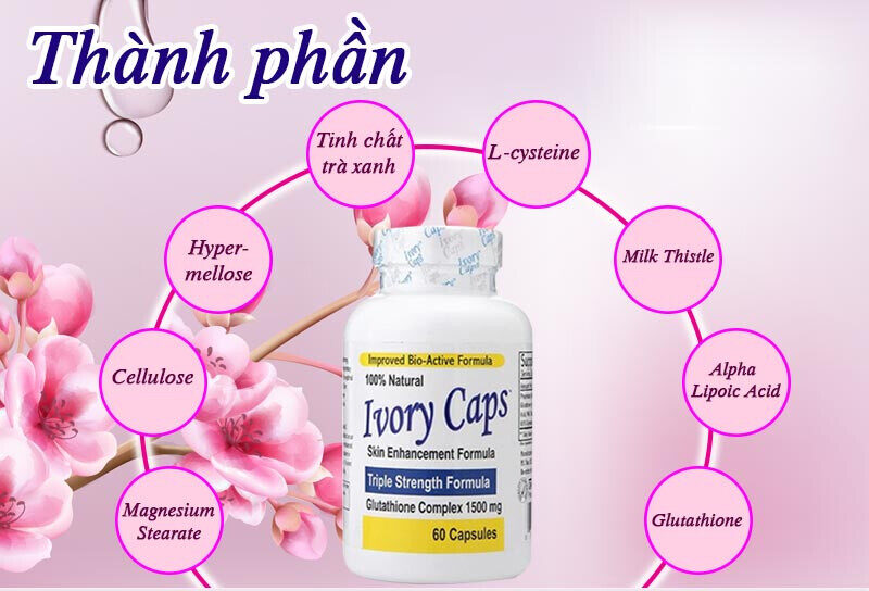 Thành phần chính trong Ivory Caps viên uống hỗ trợ trắng da tự nhiên