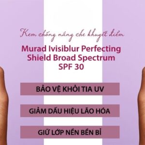 Kem chống nắng Murad Invisiblur Perfecting Shield SPF30 PA+++ tạo nên lớp màng bảo vệ da hiệu quả trước tia UVA và UVB, ngăn chặn các tổn thương do ánh nắng mặt trời gây ra. Sản phẩm giúp giảm nguy cơ lão hóa sớm, nếp nhăn và vết thâm do tia UV.