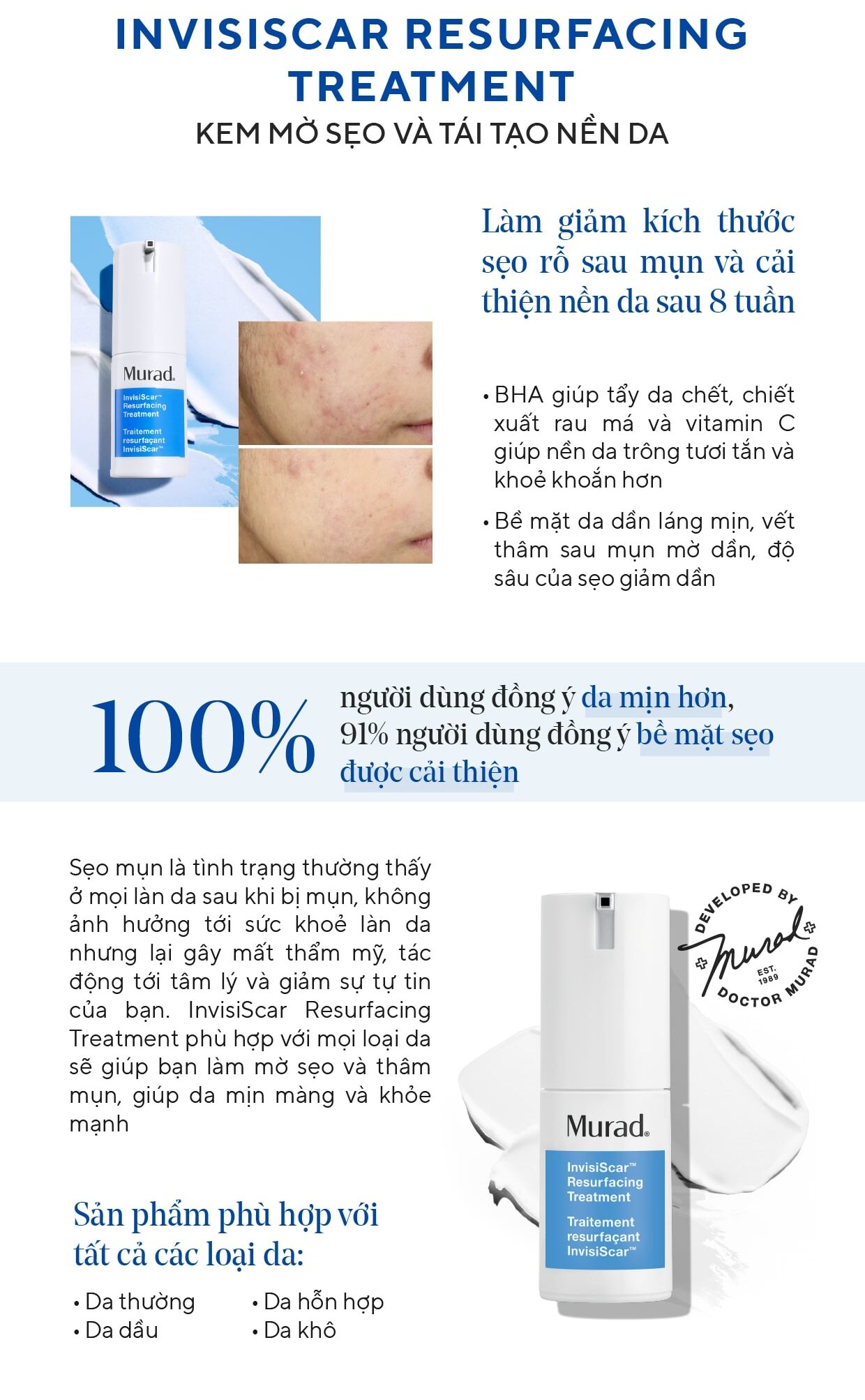 Công dụng của Kem Murad InvisiScar Resurfacing Treatment 15ml