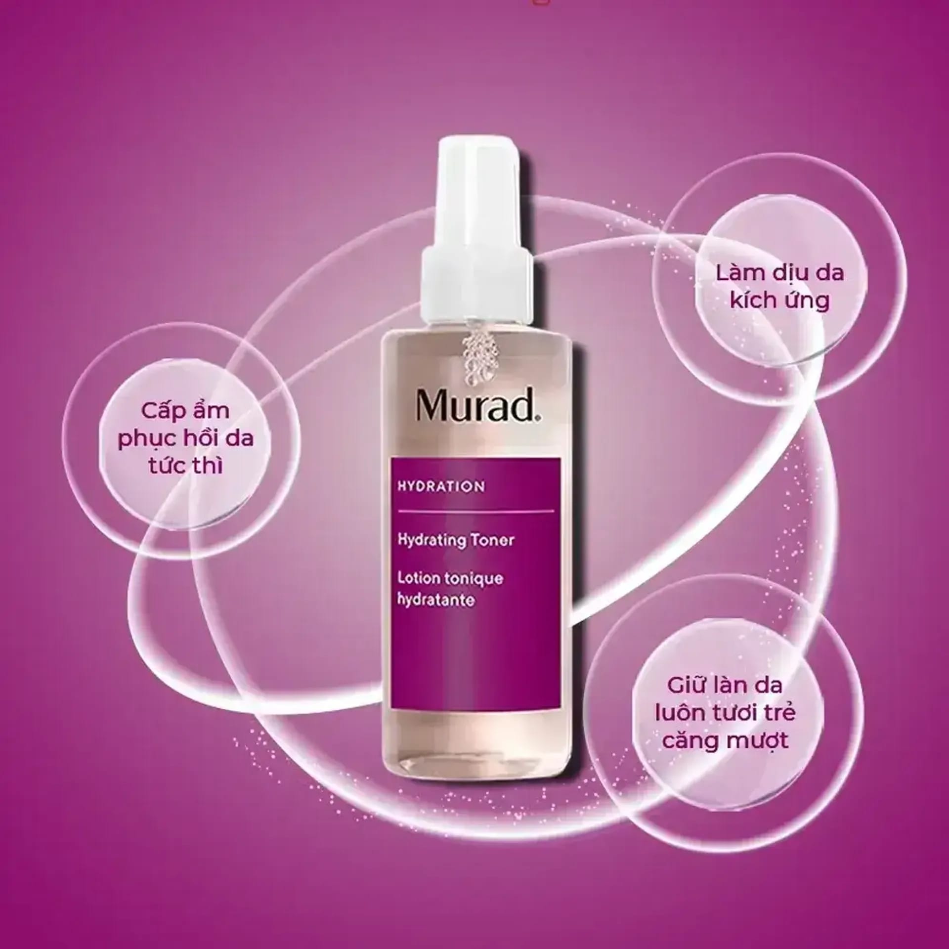 Murad Hydrating Toner được thiết kế để hỗ trợ làm dịu làn da đang bị stress do thời tiết, ánh nắng hoặc các tác nhân bên ngoài. Sau khi sử dụng, da có cảm giác dịu nhẹ, dễ chịu và bớt ửng đỏ hơn. Công dụng này đặc biệt hữu ích với làn da nhạy cảm, da mỏng yếu hoặc vừa trải qua các bước làm sạch mạnh.