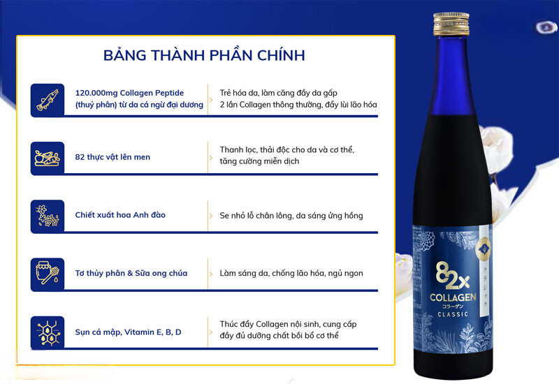 Thành phần có trong Nước uống Collagen 82X Classic 120000mg 500ml