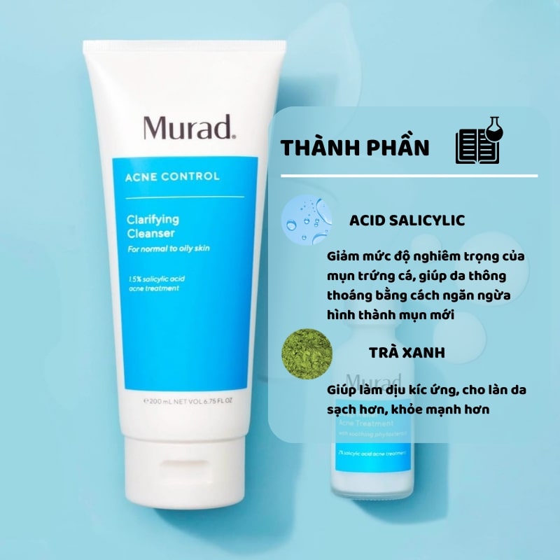 Thành phần chính của Murad Clarifying Cleanser 148ml giúp giảm viêm, ngừa mụn và làm dịu da