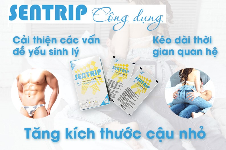 Tăng cường sinh lý nam: Tem ngậm Sentrip hỗ trợ cải thiện chức năng sinh lý nam giới, giúp nâng cao khả năng tình dục và sự tự tin. Sản phẩm giúp kích thích tuần hoàn máu, cải thiện chất lượng cuộc sống tình dục và sinh lý. Việc sử dụng đều đặn giúp nam giới duy trì sinh lực và cải thiện sức khỏe tổng thể.