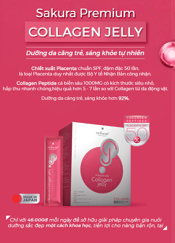 Lão hóa là quá trình tự nhiên không thể tránh khỏi, tuy nhiên có thể làm chậm nếu chăm sóc đúng cách. Thạch collagen Sakura Premium Collagen Jelly hỗ trợ bổ sung collagen cần thiết, giúp da duy trì trạng thái ổn định lâu hơn.