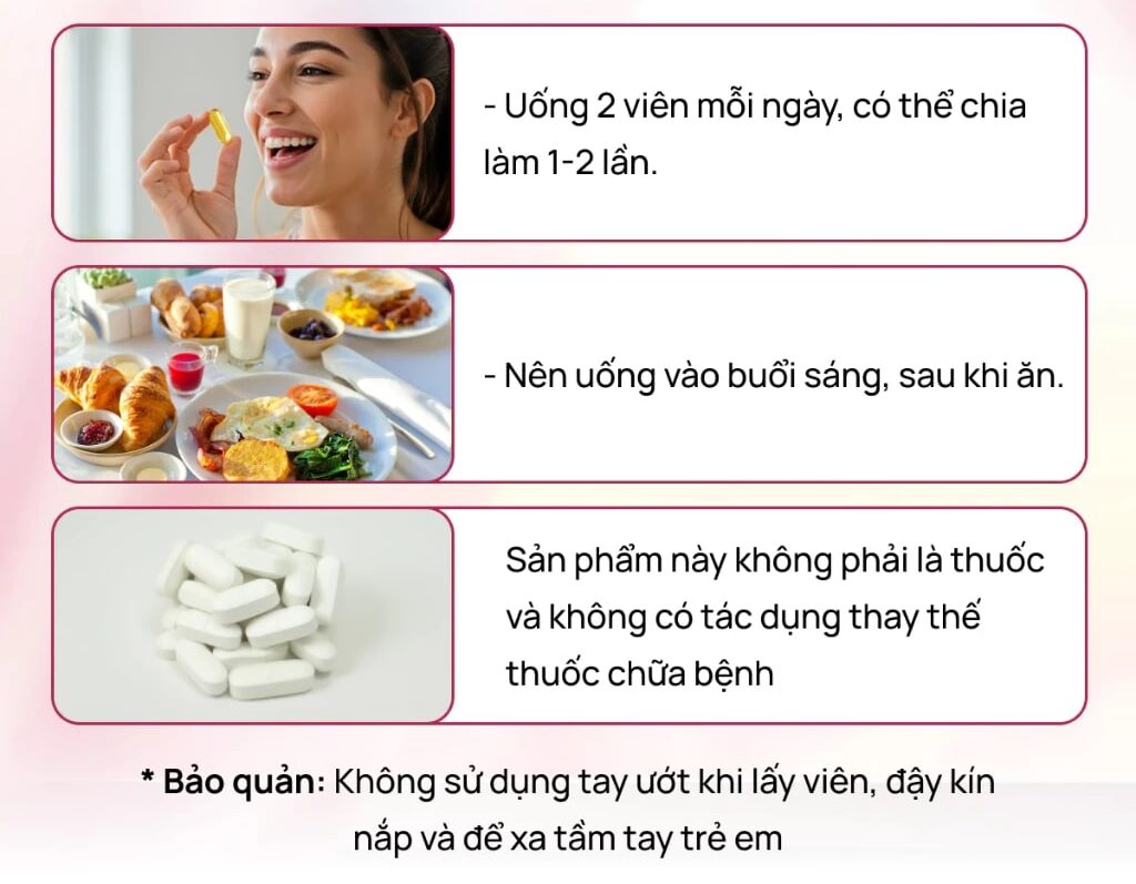 Người trưởng thành sử dụng 1–2 viên mỗi ngày, tùy nhu cầu bổ sung canxi của cơ thể.