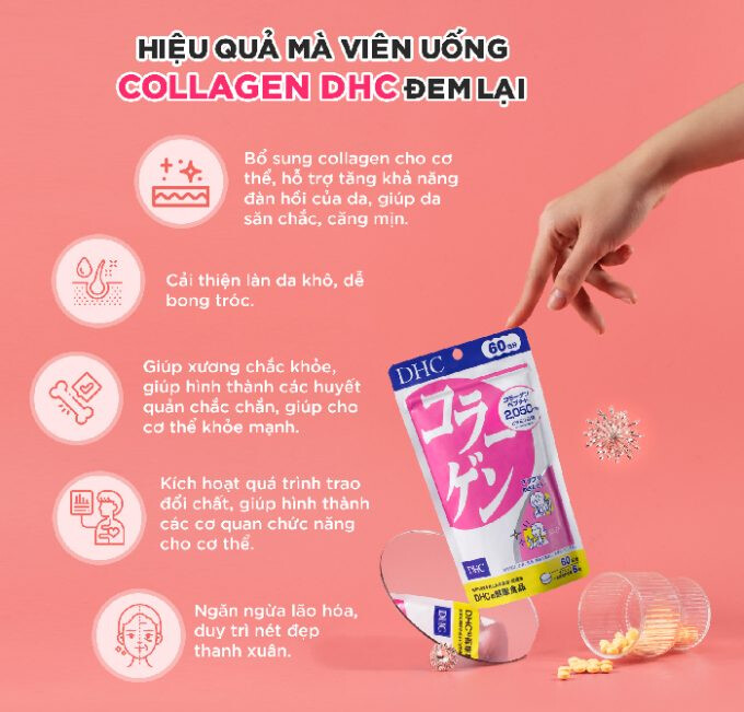 Collagen là yếu tố cốt lõi tạo nên độ săn chắc và đàn hồi của làn da. Khi bước vào giai đoạn trưởng thành, khả năng tự sản sinh collagen của cơ thể suy giảm rõ rệt. Việc bổ sung Collagen DHC giúp cung cấp nguồn collagen peptide cần thiết cho cấu trúc da.