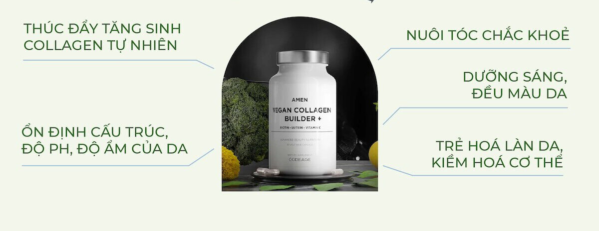 Công dụng của viên uống collagen thuần chay Codeage Amen Vegan Collagen Builder+ 30 viên