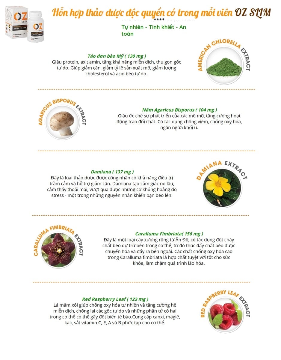 Thành phần chính của Viên uống giảm cân Oz Slim 40 viên