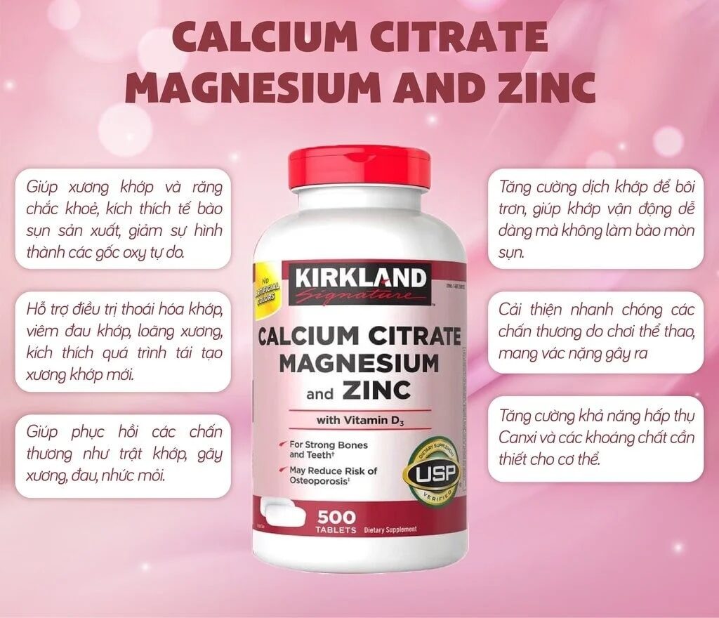 Công dụng của Kirkland Calcium Citrate Magnesium and Zinc