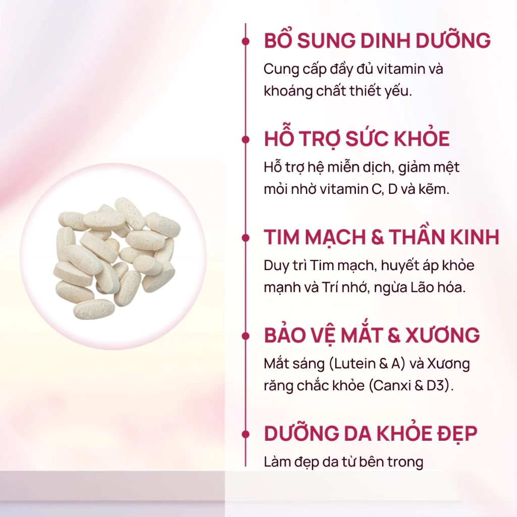 Sản phẩm đặc biệt phù hợp với người bận rộn, ăn uống không đủ chất hoặc thường xuyên căng thẳng. Nhờ cung cấp đa vi chất cùng lúc, cơ thể có nền tảng dinh dưỡng vững chắc để hoạt động hiệu quả hơn. Đây là giải pháp tiện lợi cho việc chăm sóc sức khỏe lâu dài.