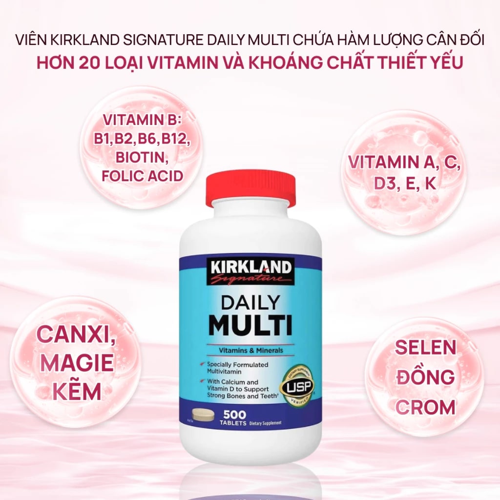Cách dùng viên uống Vitamin tổng hợp Kirkland Daily Multi 500 viên