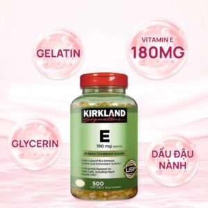 Vitamin E 400 IU Kirkland Signature 500 viên là sản phẩm bổ sung vitamin E được nhiều người tin dùng nhờ hàm lượng cao và chất lượng ổn định. Mỗi viên cung cấp 400 IU vitamin E, giúp hỗ trợ chống oxy hóa, góp phần bảo vệ tế bào trước các tác nhân gây hại từ môi trường. Viên uống còn hỗ trợ duy trì làn da mềm mại, giảm khô ráp và giúp cơ thể khỏe mạnh hơn từ bên trong. Sản phẩm phù hợp cho người trưởng thành có nhu cầu bổ sung vitamin E hằng ngày để chăm sóc sức khỏe lâu dài. Dạng viên nang mềm dễ uống, thuận tiện sử dụng mỗi ngày. Lọ lớn 500 viên của Kirkland Signature giúp tiết kiệm chi phí và dùng được trong thời gian dài.